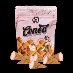 Coned are delicious mini sugar cones filled with rich Delta-9 THC Milk Chocolate. As a kind of chocolate delta-9 THC edible treat, they deliver a powerful head and body experience that will have you feeling at ease. Enjoy the best part of a sundae cone while feeling the incredible effects of Delta-9 THC!